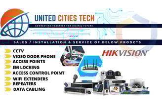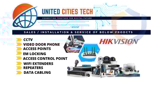 At United Cities Tech, we specialize in CCTV, EPABX systems, network cabling, and Wi-Fi routers. We are proud partners of ACT Fiber Net and authorized service providers for Hikvision and CP Plus.